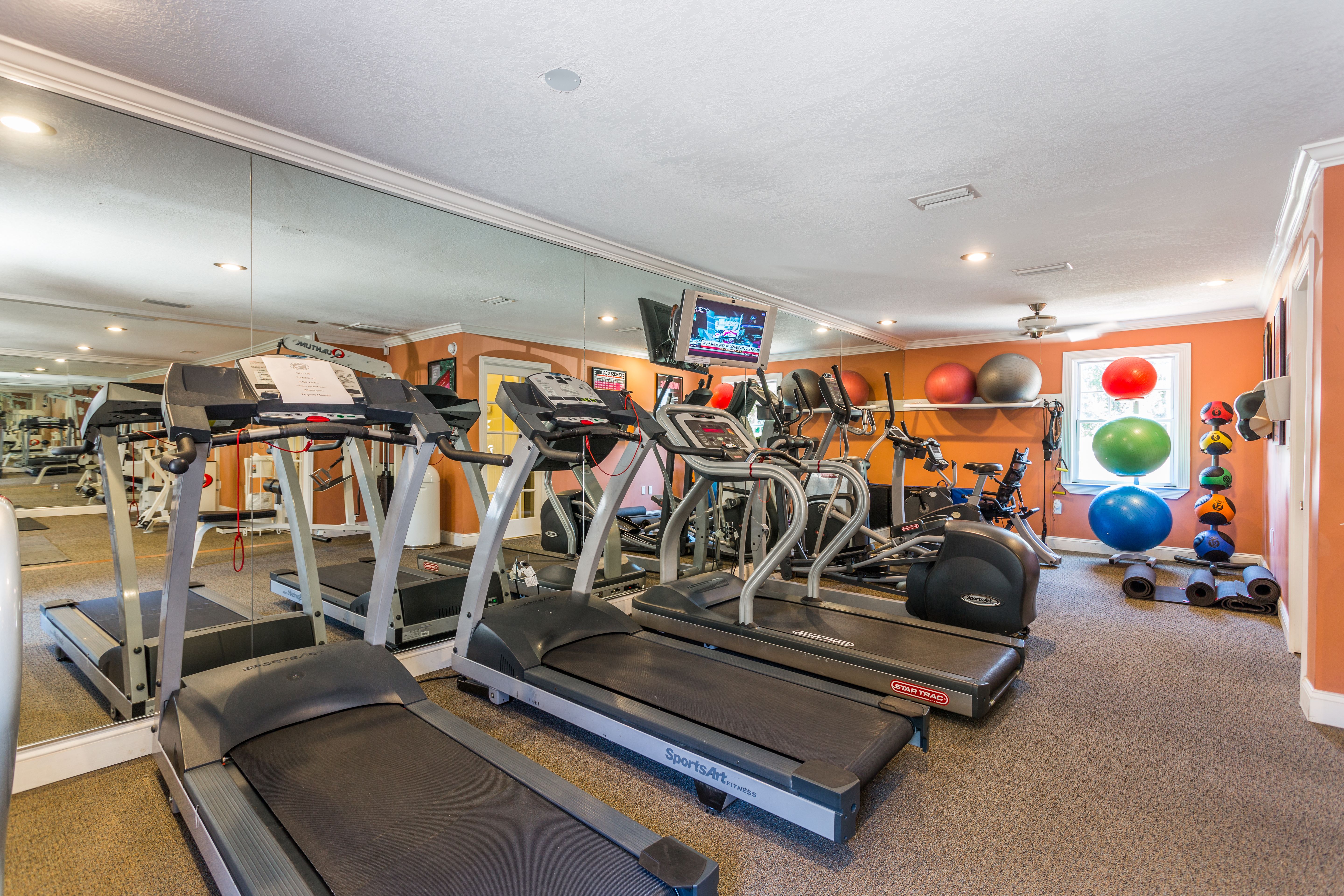 Up to 10 cash back Cardio equipment with personal TVs large weight room indoor. Cardio equipment with personal TVs. I like how the history of the place was preserved in some ways in hallways and black and white pictures.
